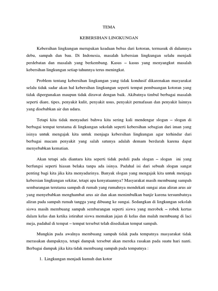 Kebersihan lingkungan meliputi tempat bersekolah, tempat bekerja, berbagai sarana umum lainnya …